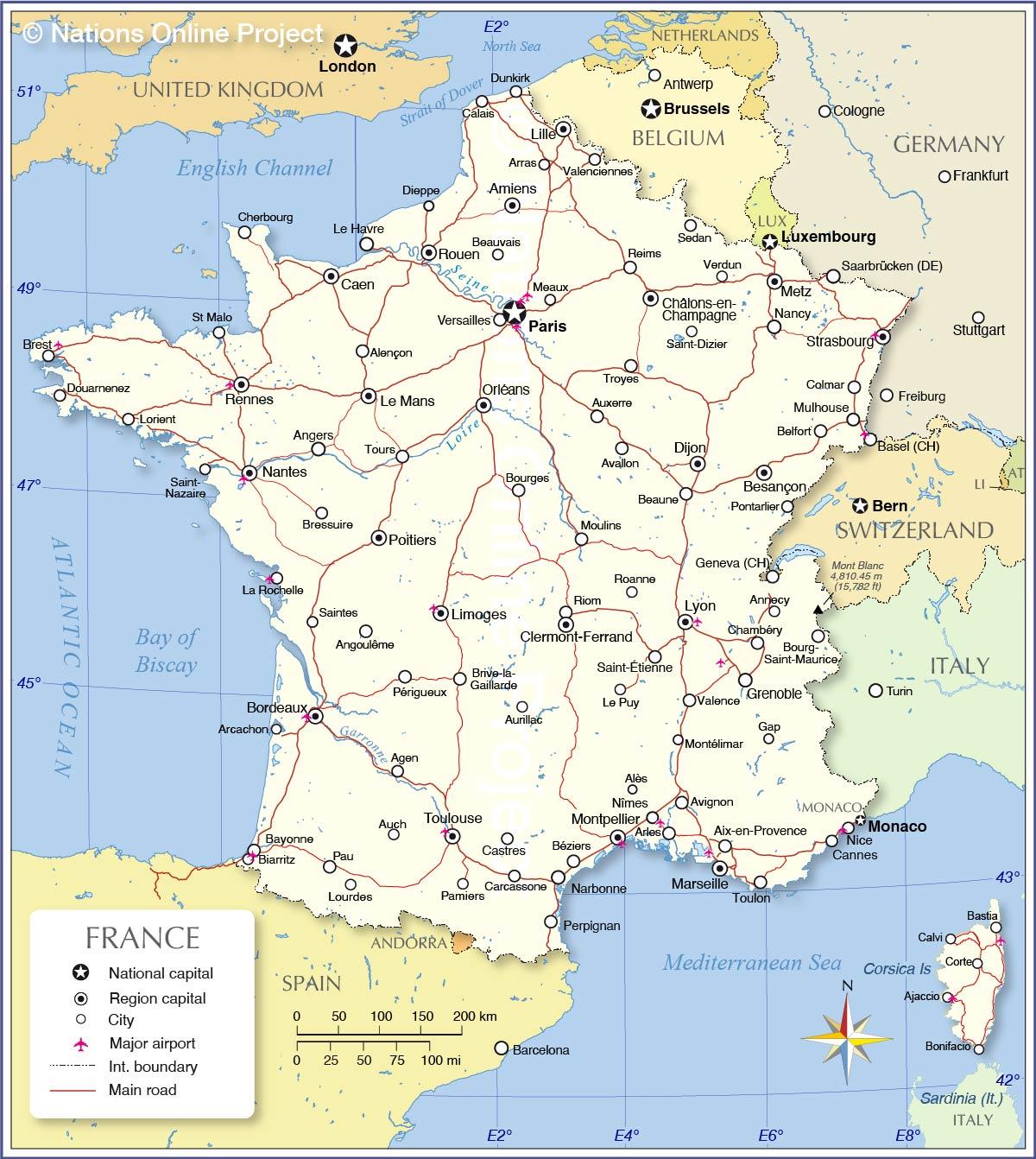 Frankrijk luchthavens kaart internationaal. Internationale luchthavens in Frankrijk kaart (West-Europa - Europa) af te drukken. Internationale luchthavens in Frankrijk kaart (West-Europa - Europa) te downloaden. Frankrijk, als bekend toeristisch land, heeft een groot aantal internationale luchthavens ontwikkeld. Het telt er 34, met de luchthavens in Parijs (Orly en Charles de Gaulle als die met het grootste verkeer) zoals u kunt zien op de kaart van internationale luchthavens in Frankrijk. Als u echter een skivakantie of een bezoek aan kleinere en minder bekende plaatsen in het land plant, kunt u overwegen kleinere luchthavens te gebruiken, zoals Nice of Toulouse.